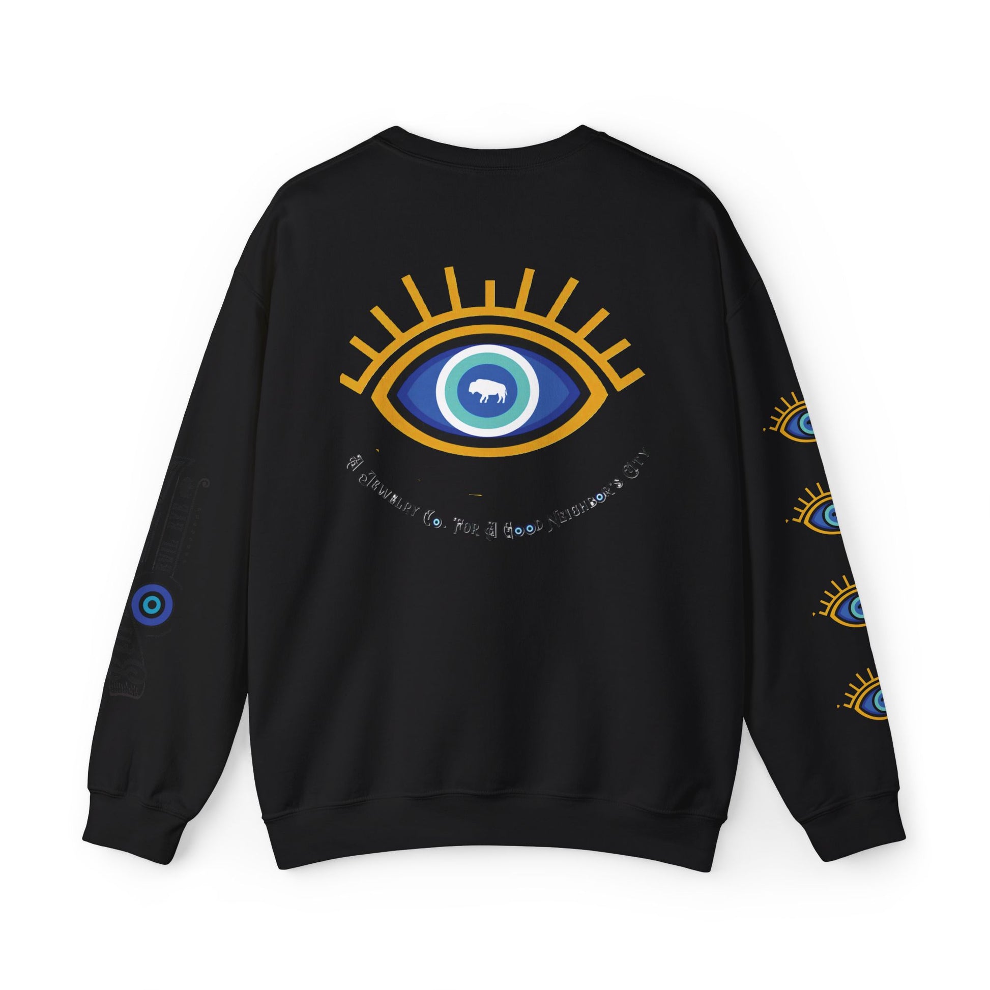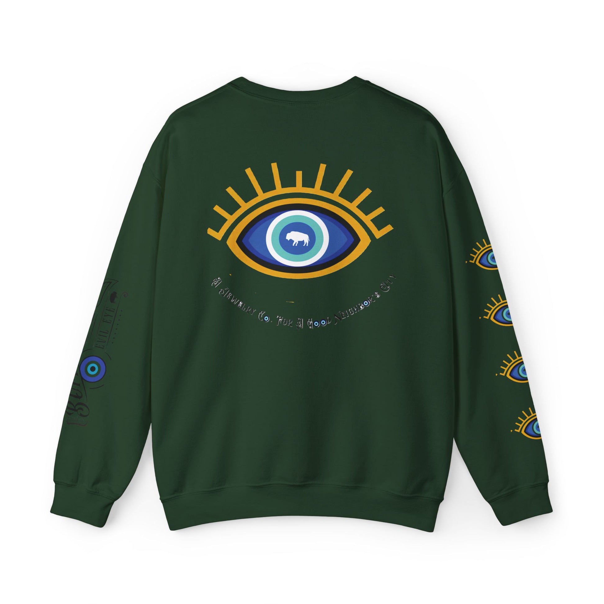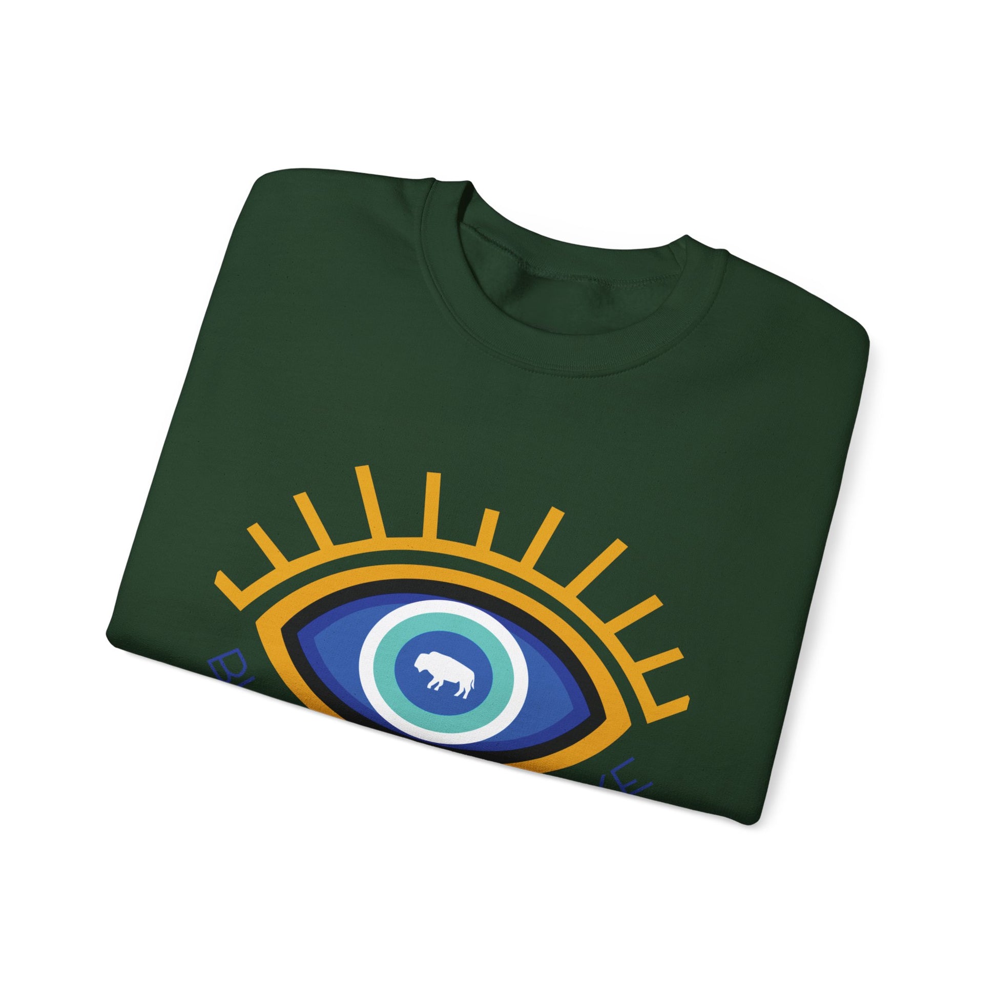 This Buffalo Evil Eye sweatshirt exudes a mystical and edgy vibe, perfect for those who love unique and spiritual designs. Ideal for anyone looking to add a touch of intrigue to their casual wardrobe. Relevant for Halloween, spooky season, and everyday wear.