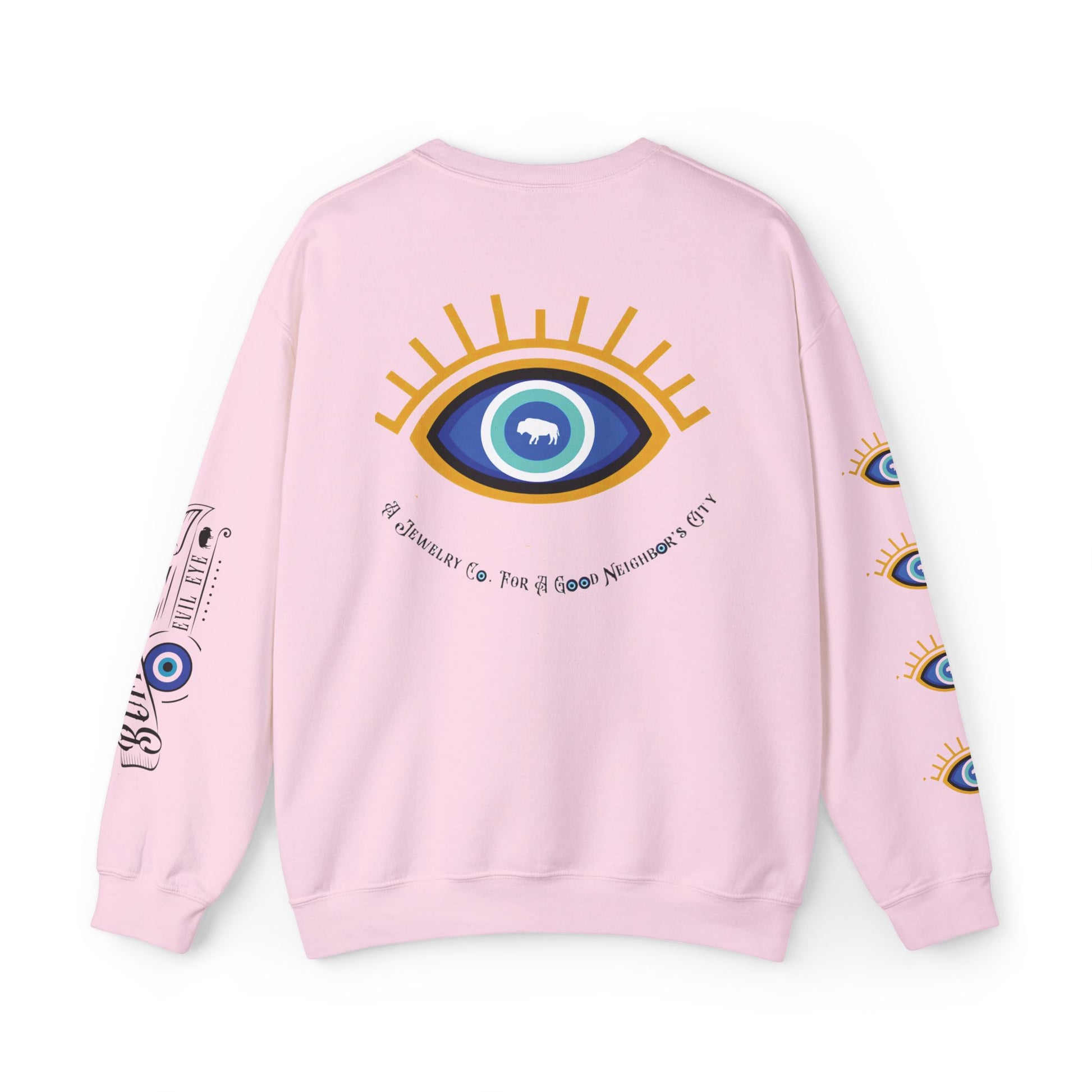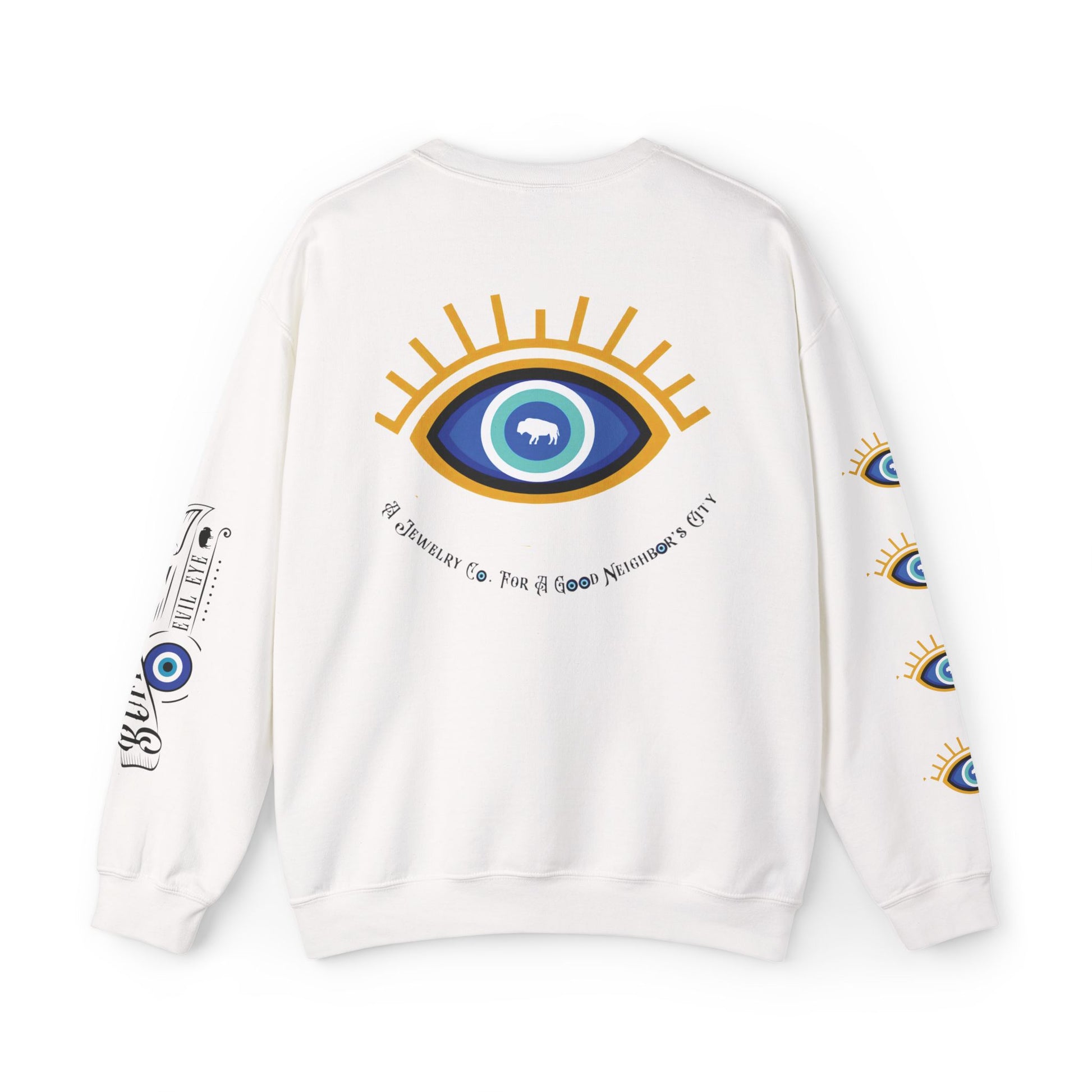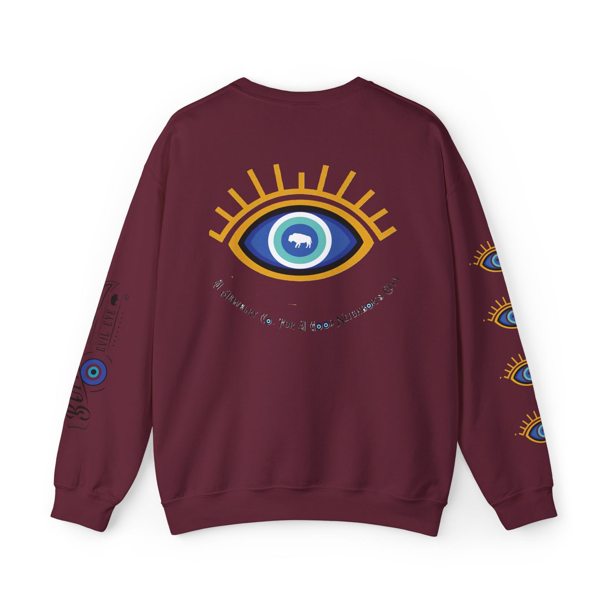 This Buffalo Evil Eye sweatshirt exudes a mystical and edgy vibe, perfect for those who love unique and spiritual designs. Ideal for anyone looking to add a touch of intrigue to their casual wardrobe. Relevant for Halloween, spooky season, and everyday wear.
